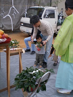 宮司様が鎮め物をします