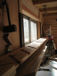 今カウンター下部は棟梁が造作をしています。