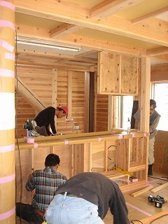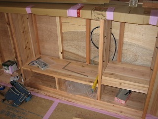 階段下の家具廻りを造作中。